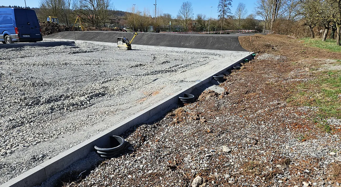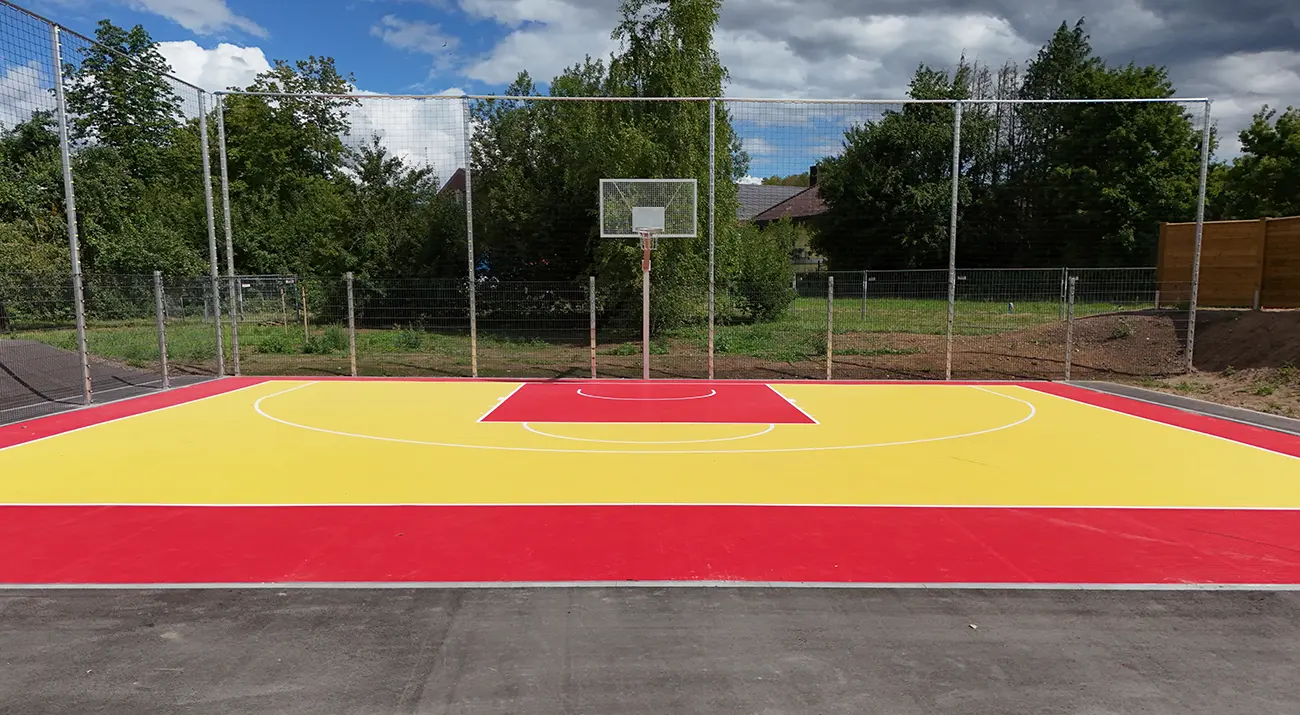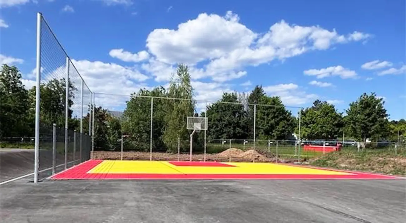 Kleine Gemeinde, große Vision: In Großbottwar, einem idyllischen Ort in Baden-Württemberg, wurde auf einem Areal von 7.000 qm ein wahres Trendsportparadies geschaffen – das Freizeitgelände am Bach. Im vergangenen Jahr entstanden hier spannende Sport-Highlights wie ein Pump-Track, Slacklines, eine Boule-Bahn, ein Boulder-Bereich, Trampoline und ein Basketballplatz – und das ist noch lange nicht alles. Ein perfekter Ort für Sportbegeisterte aller Altersgruppen, um sich auszuprobieren, zu trainieren und gemeinsam aktiv zu sein. Entdecke die Vielfalt und die Möglichkeiten, die dieses innovative Freizeitgelände zu bieten hat. Unser Auftrag in diesem Projekt war es einen ansprechenden Basketballplatz zu planen und zu bauen. Die Vorarbeiten wie die Asphaltdecke wurden durch den Rohbauer hergestellt, sodass wir hier einen sicheren Ballfangzaun, eine normgerechte Basketballanlage inklusive einem bunten Bergo Boden hergestellt haben. Bei diesem Projekt hat sich wieder einmal die gute Zusammenarbeit mit unserem Partner Kübler Sport gezeigt.